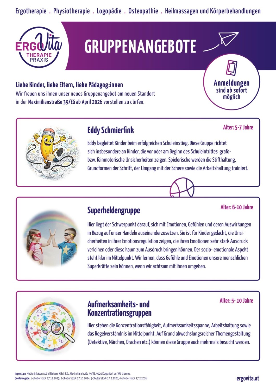 Wir freuen uns ihnen unser neues Gruppenangebot am neuen Standortin der Maximilianstraße 39/EG ab April 2026 vorstellen zu dürfen.